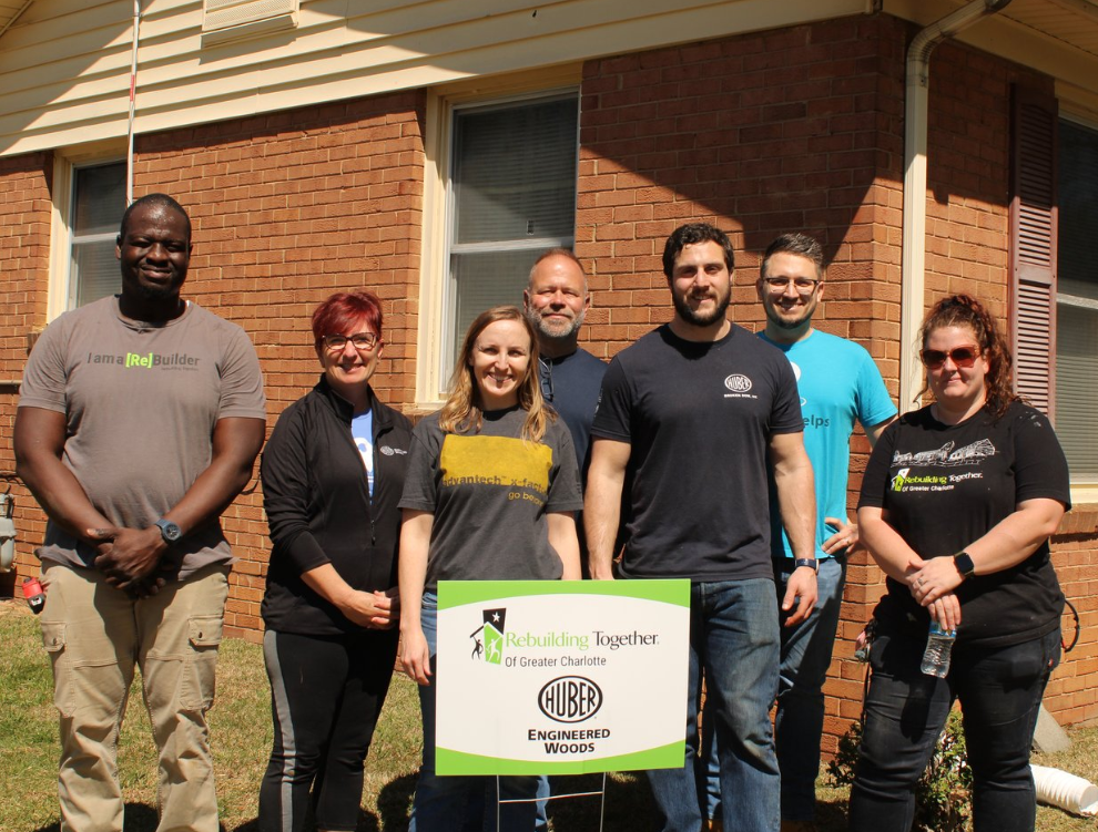 Five volunteers from Huber Engineered Woods, a company with corporate offices in Charlotte that produces products for residential, multifamily, and light commercial projects, recen