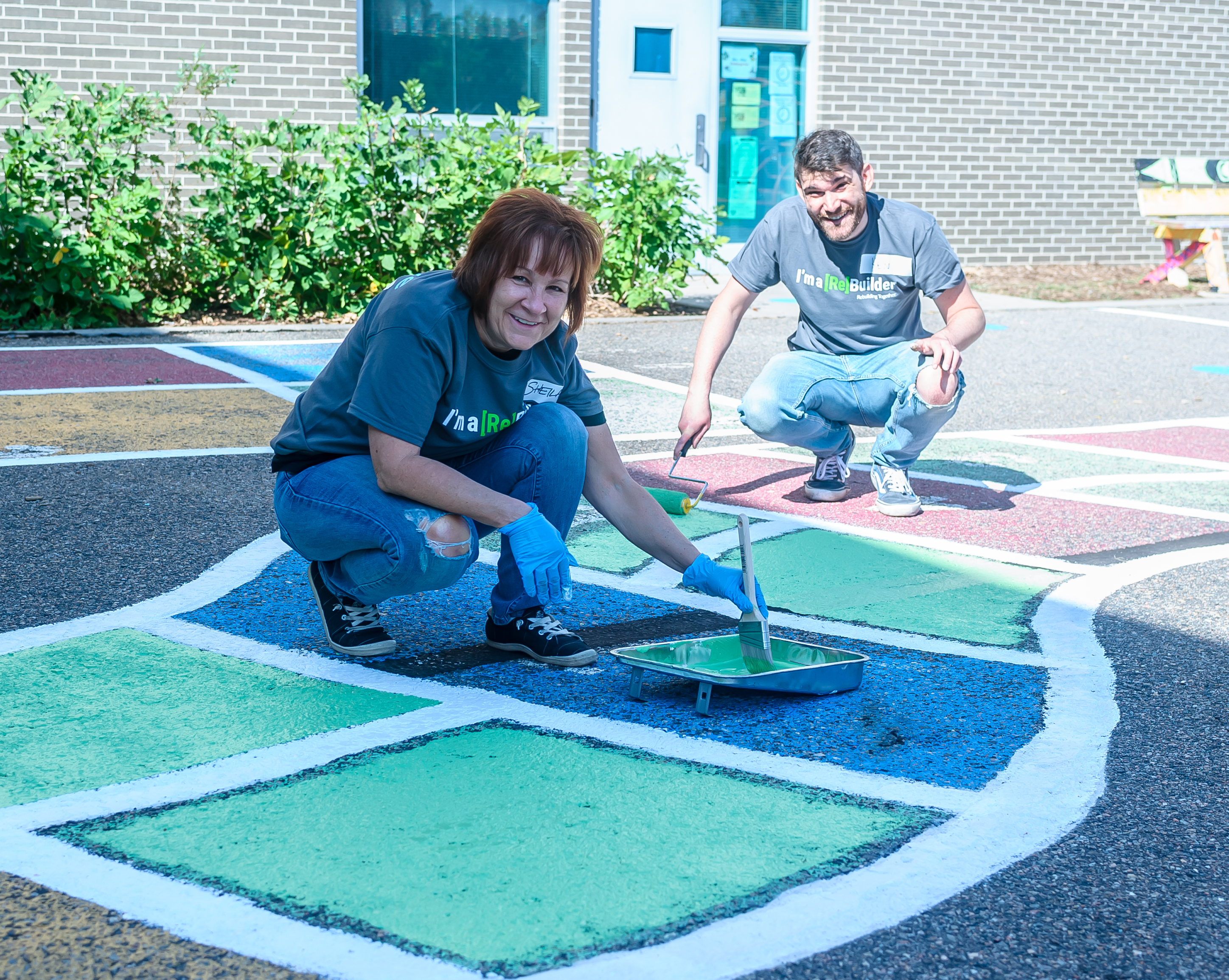 At the Boston K-8 School, a neighborhood public elementary school, they painted the blacktop, built and painted benches, removed overgrown shrubbery and created a small mural on common area walls. We couldn’t wait to see the students’ and teachers’ faces light up once they returned to school the following week!
